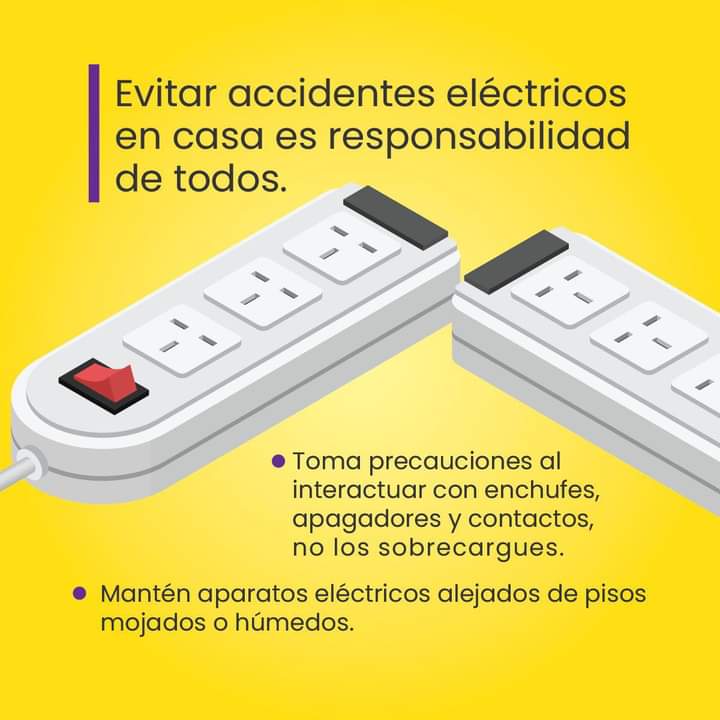 “Evitar accidentes en casa es muy simple”.Recuerda tomar tus precauciones al elegir contactos, verificar que los enchufes y apagadores estén en buen estado.¡Cuida a tu familia!