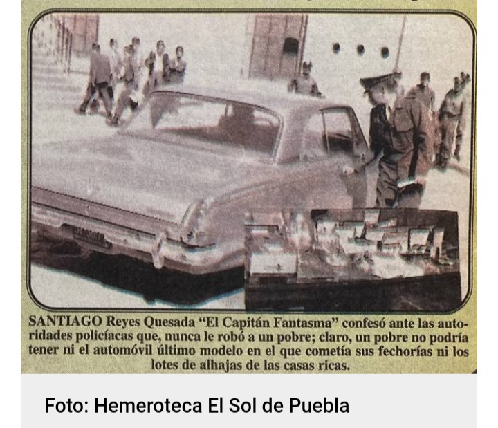 Más de tres décadas de delinquir de forma audaz terminaron cuando, Santiago Reyes Quesada, mejor conocido como El Capitán Fantasma, llegó a la Angelópolis para seguir con sus fechorías. Tenía la habilidad para robar casas y también para desvalijar y robar flamantes automóviles; enfrentó varias persecuciones policiacas con peligro de perder la vida y se distinguió por su genialidad para fugarse de la cárcel en la que estuviera preso, pero en Puebla no corrió con la misma suerte.