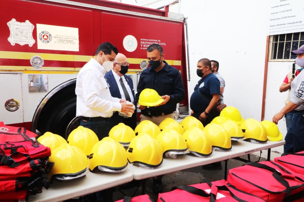 Los elementos de Protección Civil recibieron chalecos con reflejantes, así como también cascos de seguridad personal, tipo europeos.Adicionalmente el Heroico Cuerpo de Bomberos recibió 20 mangueras contra incendio, pitones para controlar el flujo del agua y aceite hidráulico para la herramienta llamada «Las quijadas de la vida