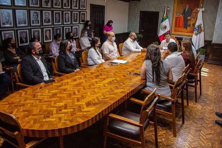 El alcalde Mario Alberto López Hernández encabezó la ceremonia de firma de convenio, en un encuentro con directivos de planteles educativos, celebrado en la sala “Benito Juárez” de Presidencia Municipal.