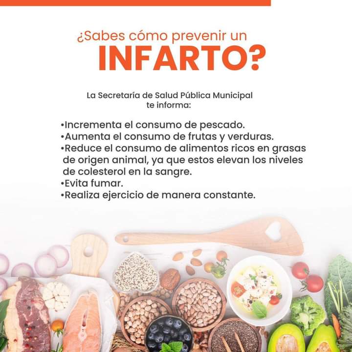 En caso de presentar alguno de estos síntomas acude a tu médico: Dolor intenso en el pecho, sensación de opresión intensa en el pecho, dolor en brazo izquierdo y cuello, sudoración abundante, fatiga extrema, náusea y vómito. “La prevención es la mejor medicina”