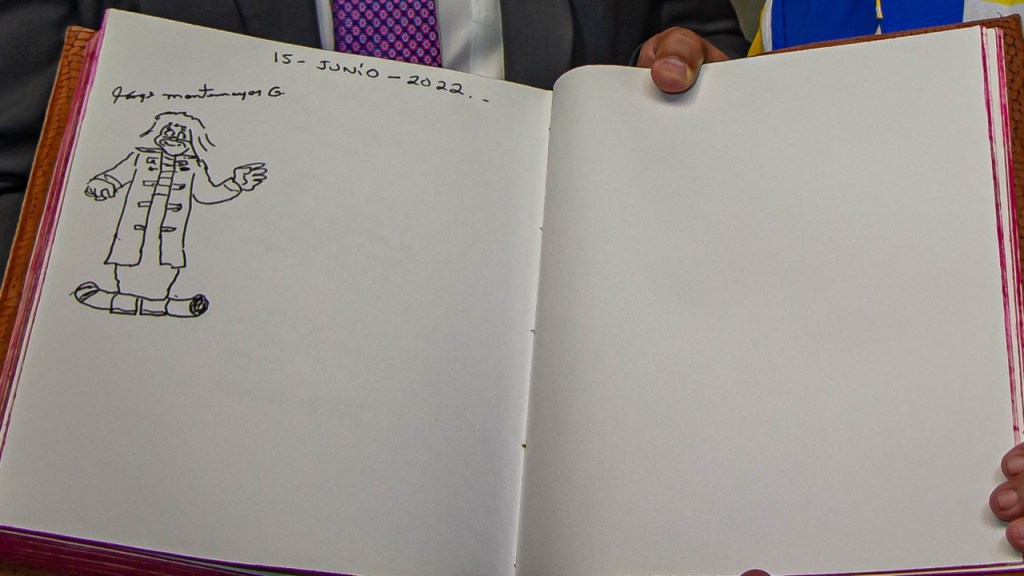 Su firma arrancó sonrisas a los propios servidores públicos, pues plasmó en el libro un autoretrato de su caracterización como payaso, caracterización que ha venido haciendo por 65 años.
