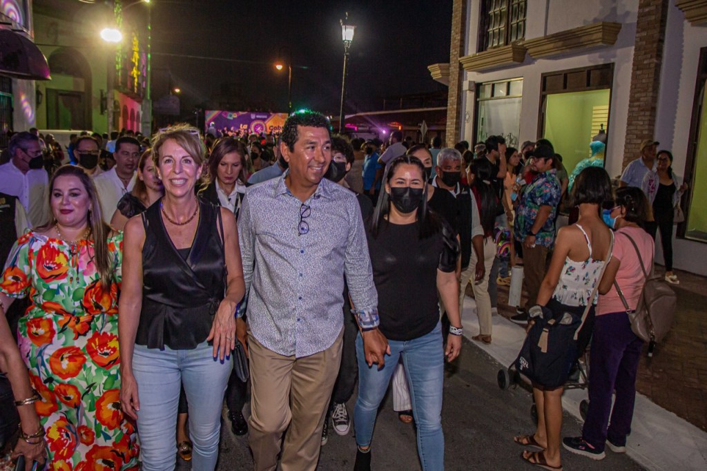 Tras dos años de no presentar actividades, este viernes por la noche la Calle 9 cobró vida al ser reinaugurada por el alcalde Mario Alberto López Hernández, quien fue acompañado por su esposa Marsella Huerta de López y por la Cónsul General de Estados Unidos en Matamoros, Yolanda A. Parra.