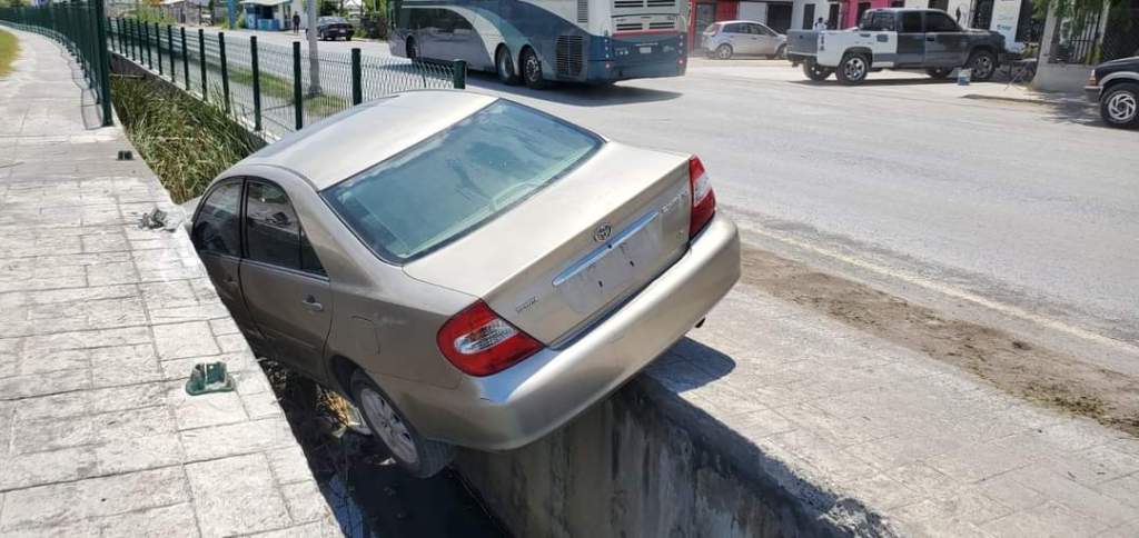 Matamoros.- Una joven conductora perdió el control de su auto y acabó en el canal del libramiento Emilio Portes Gil, cuando se dirigía a su trabajo.
