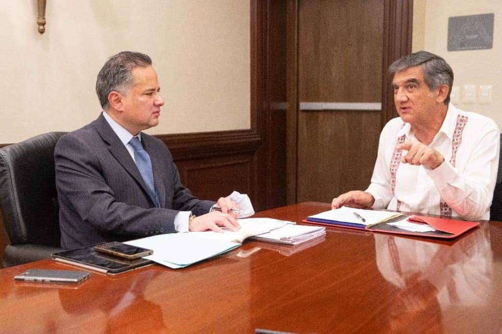 El gobernador electo, Villarreal Anaya sostuvo este mediodía una reunión de trabajo con Santiago Nieto, quien aparte de asesorar el proceso administrativo de entrega-recepción, dará seguimiento a las acciones de la bancada del PAN, que están enmarcadas en la ilegalidad, y que han motivado acciones de inconstitucionalidad ante la Suprema Corte de Justicia por parte de los diputados de Morena.