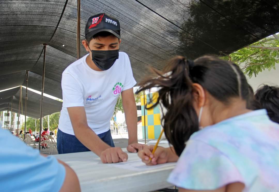 En esta ocasión acudimos al Módulo de Vacunación temporal ubicado en el Parque Olímpico en donde los menores participaron realizando un sencillo cuestionario o dibujos para expresar sus sentires, compartiendo que les hace feliz y que los entristece.