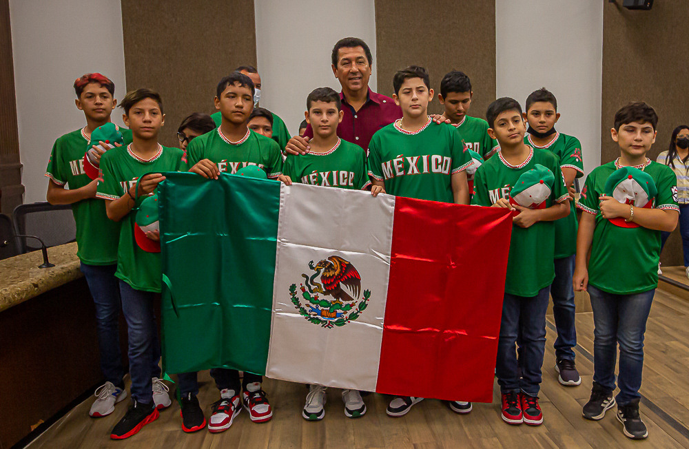 Esta mañana el alcalde Mario Alberto López Hernández abanderó a la Selección Mexicana de Beisbol Infantil, integrada por los campeones de la Liga Matamoros A.C. y quienes a partir del 18 de agosto representarán a México en la Serie Mundial de Williamsport, Pennsylvania.