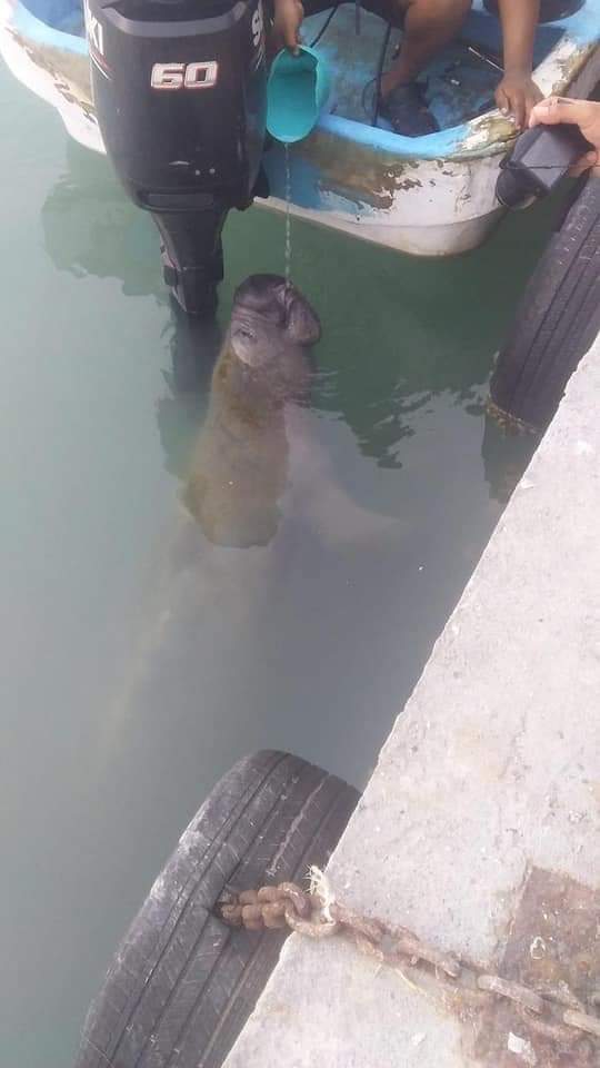 Un peculiar visitante llegó a la comunidad del puerto de #Matamoros y ya sido avistado En en fraccionamiento pescadores de dicha localidad, este animal de gran tamaño ha decidido pasar por la laguna madre para alimentarse de las plantas que crecen en el fondo de la laguna, se trata de un género de mamíferos Sirenidos completamente inofensivos para el ser humano y que se encuentran en peligro de extinción,por lo que resulta muy sorprendente y grato avistar este tipo de animal,se pide a la población evitar dañarlo ya que resultan ser muy delicados.