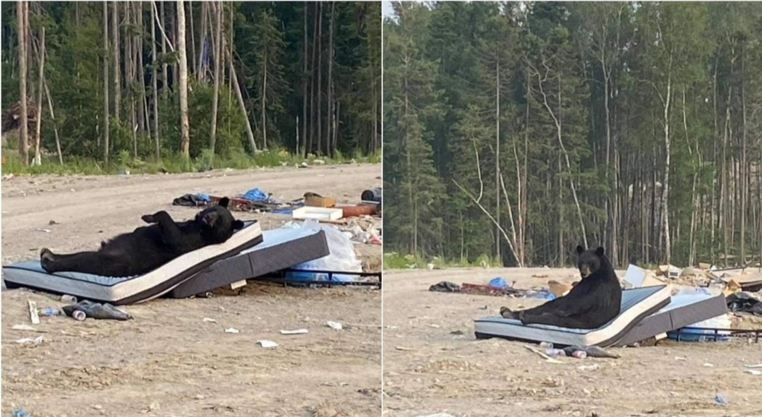 La usuaria de Facebook Keira Mamawka compartió las imágenes el 19 de julio del 2021, donde aparece un oso descansando en un colchón viejo y abandonado.