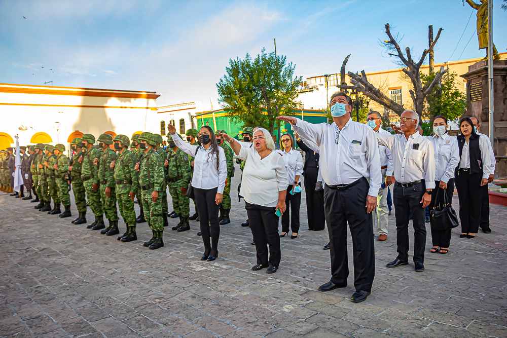 Para seguir fomentando los valores cívicos entre los servidores públicos, este lunes el alcalde Mario Alberto López Hernández encabezó la ceremonia de honores a la Bandera correspondientes al mes de octubre, cuya organización estuvo a cargo de la Secretaría de Fomento Económico y del Empleo.