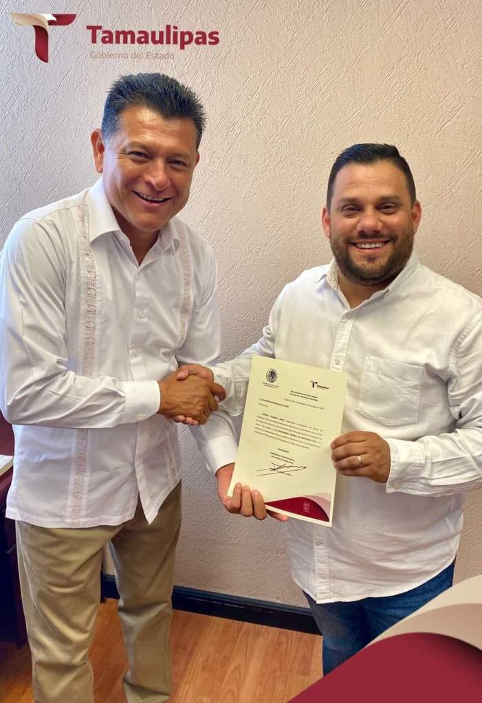 Continuando con su gira de trabajo en la ciudad el dirigente estatal, Melhem Salinas, también hizo entrega de la credencial oficial que acredita el nombramiento de Adrián Sosa Ochoa como presidente de la Unidad Revolucionaria Filial Matamoros y a Maricela Guardiola Hernández como secretaria general de la misma.