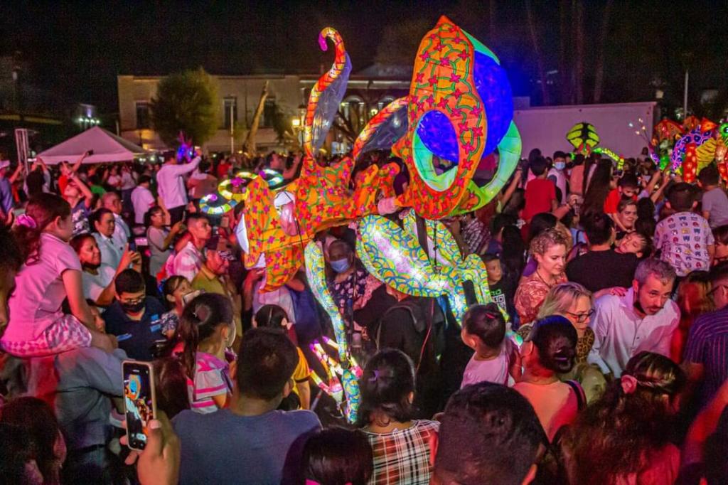 Fue una noche de grandes emociones con la presentación de la Compañía Titular de Danza Folklórica de la UANL y su programa “Andanzas Mexicanas” y más tarde con la presentación de los alebrijes que iluminaron toda la plaza principal causando exclamaciones de admiración entre los cientos de asistentes, especialmente los niños.