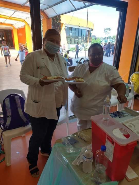 En esos dos lugares, el personal que esta aplicando las vacunas y la gente que acudió a estas para sus hijos e hijas, degustaron de la comida.