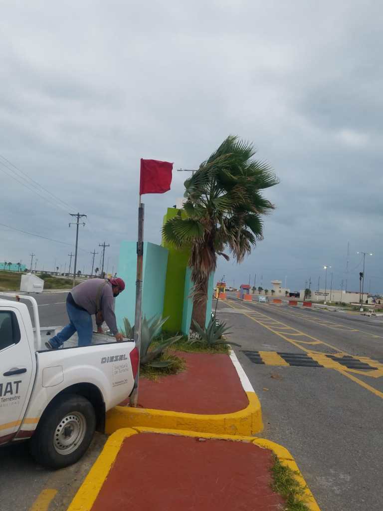 Debido a las condiciones climatológicas que se presentan en Matamoros, en la Playa Bagdad fue colocada bandera roja.