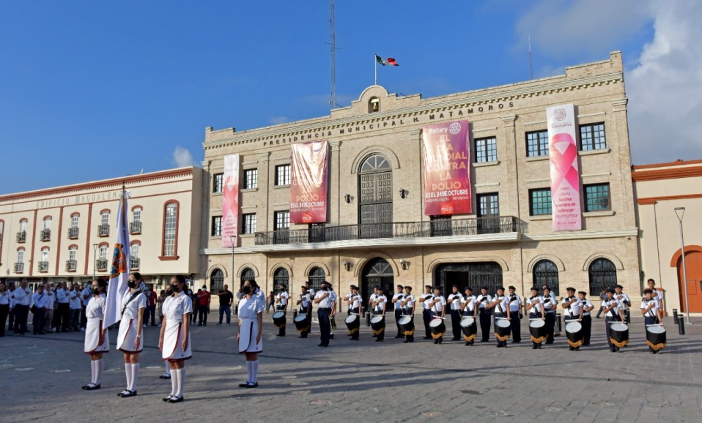 Esta mañana el Sistema DIF Matamoros que preside la C.P. Marsella Huerta Sosa de López estuvo a cargo de la Ceremonia de Honores a la Bandera que se realiza el primer lunes del mes en la Plaza Principal Miguel Hidalgo.