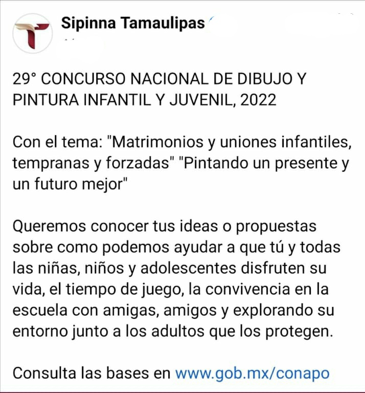 SIPINNA Matamoros invita a los niños, niñas, adolescentes y jóvenes a participar en el 29 Concurso Nacional de Dibujo y Pintura Infantil y Juvenil 2022.