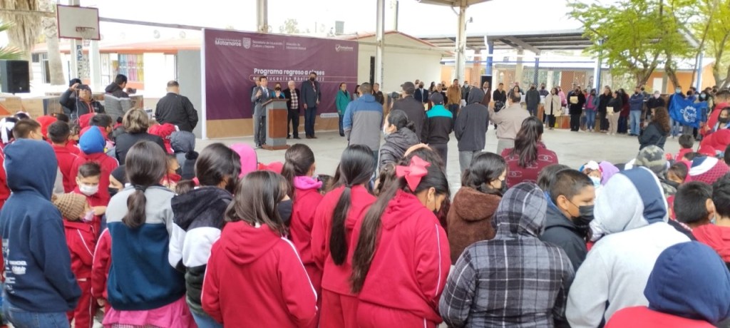 Acompañado de funcionarios municipales y autoridades educativas, el Presidente Municipal arribó a la primaria “Esperanza Luna Contreras” ubicada en la colonia Santa Cecilia, para cumplir compromisos adquiridos con la niñez y padres de familia de las diferentes escuelas de Matamoros.