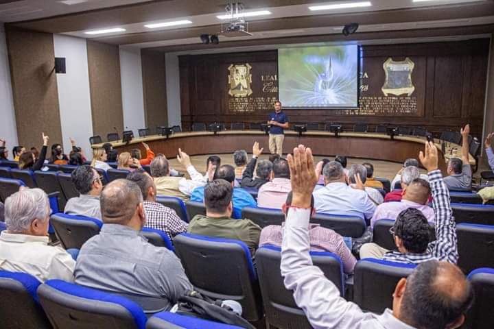 La reunión en la que participaron los directores de las distintas Secretarías, entre ellas, Desarrollo Urbano y Ecología, Contraloría Municipal, Servicios Públicos Municipales, y Oficialía Mayor, se realizó a las 7:00 horas de este miércoles en el auditorio “Pedro Sáenz González” de la Presidencia Municipal.