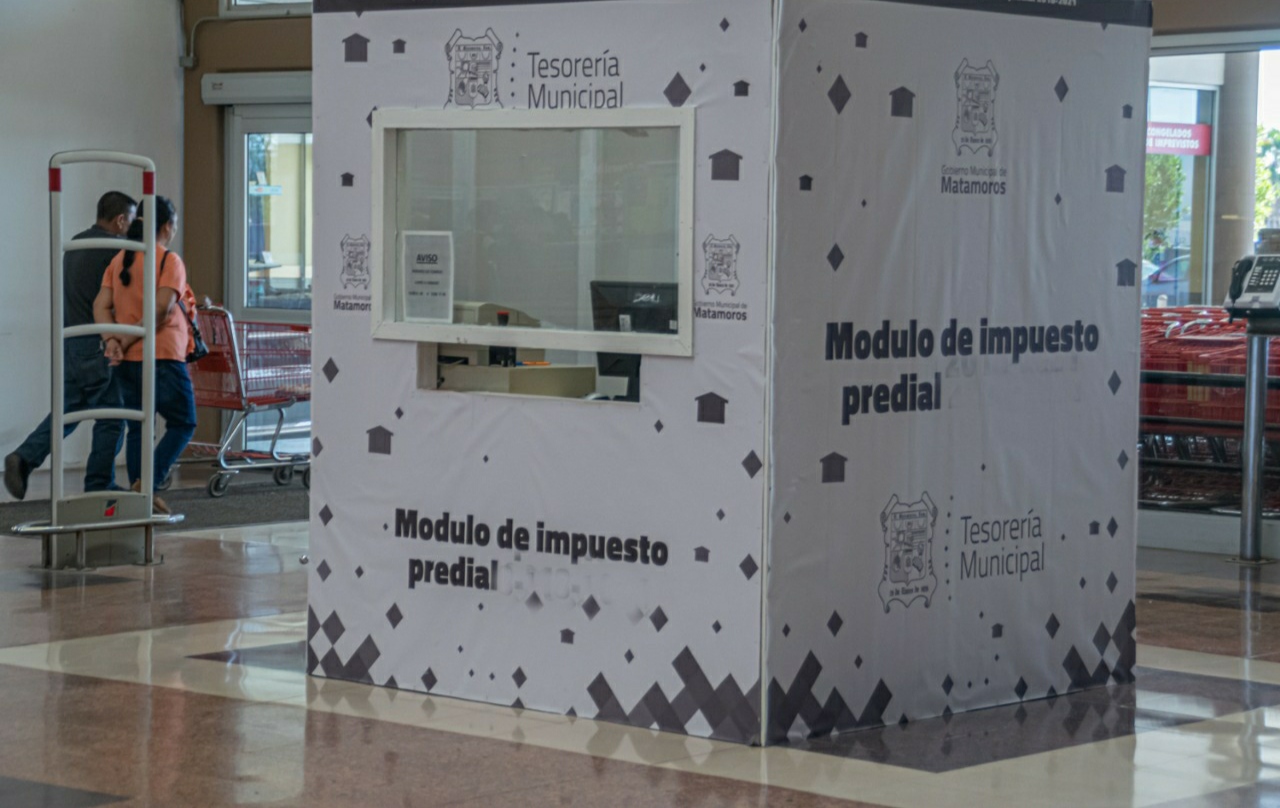 El Gobierno de Matamoros a través de la Dirección de Ingresos informa a los ciudadanos que a partir del próximo lunes 2 de enero de 2023, además de las cajas de la tesorería municipal, operarán cinco módulos para el cobro del Impuesto Predial, los cuales estarán ubicados en Soriana Plaza Fiesta y Lauro Villar, en Walmart, en Parque Olímpico y en JAD de la Roberto Guerra.