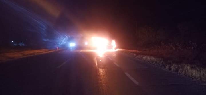 Reynosa, Tamaulipas.- Un vehículo particular se encuentra incendiándose a la altura del Ejido Palo Blanco, ubicado sobre el kilómetro 80 de la Carretera Federal 97 Reynosa-San Fernando.
