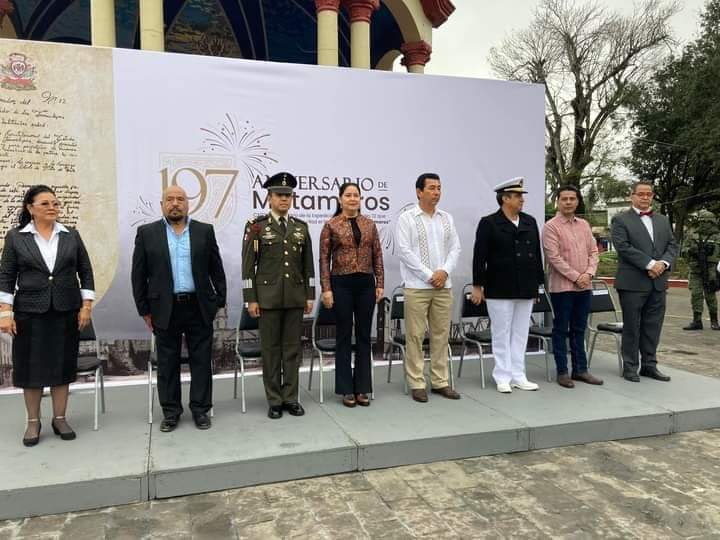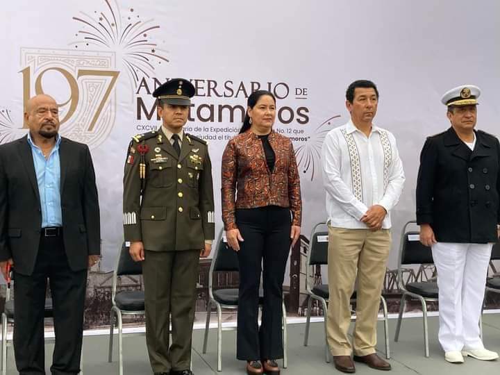 Matamoros .- Esta mañana se conmemoró el 197 Aniversario De Matamoros con un evento cívico con autoridades civiles y militares en la plaza Miguel Hidalgo donde se rindieron honores a la bandera y se escuchó por párate de la maestra Genoveva Hi Gonzalez el decreto #12 de el 28 de enero de 1826.