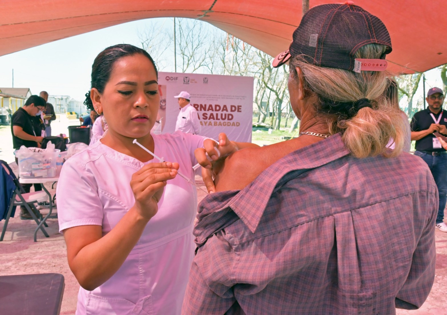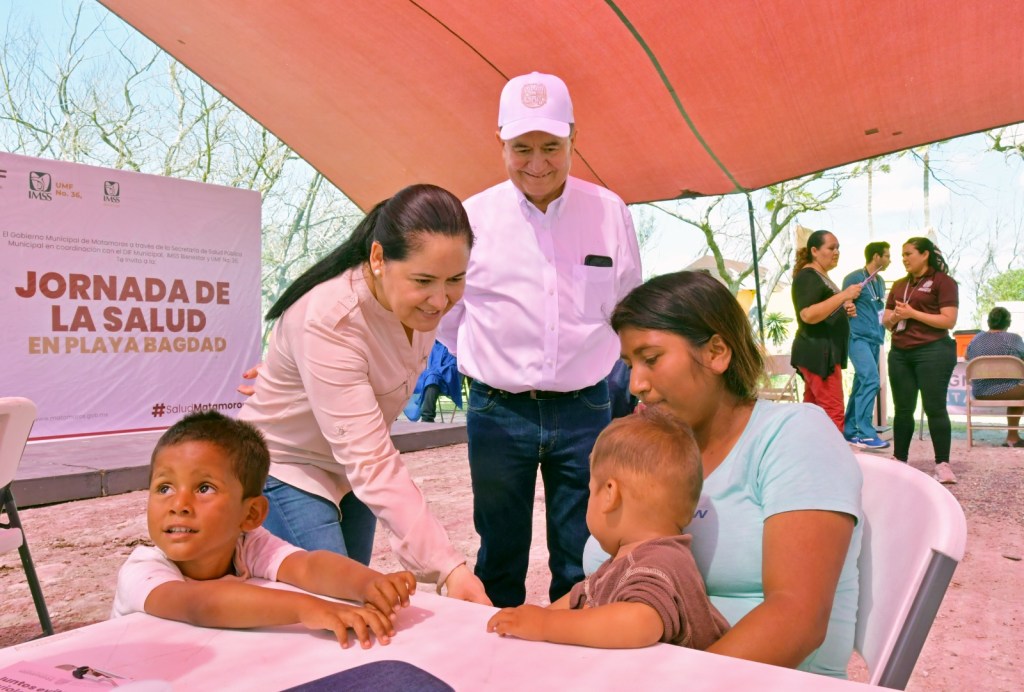 Con la finalidad de acercar a la población los servicios de atención a la salud y cuidado, la Secretaría de Salud Pública Municipal y el Sistema DIF Matamoros con la colaboración del Instituto Mexicano del Seguro Social, llevaron a cabo este miércoles una Jornada de Salud en beneficio de las familias que habitan en la Playa Bagdad.