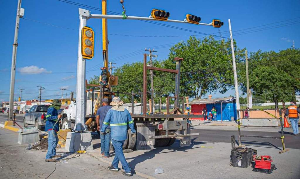 Personal de la Dirección de Reordenamiento de la Vía Pública del Gobierno de Matamoros, procedió esta mañana a la instalación del Semáforo en la Avenida Pedro Cárdenas y Marte R. Gómez, el cual garantizará mayor seguridad a los automovilistas.