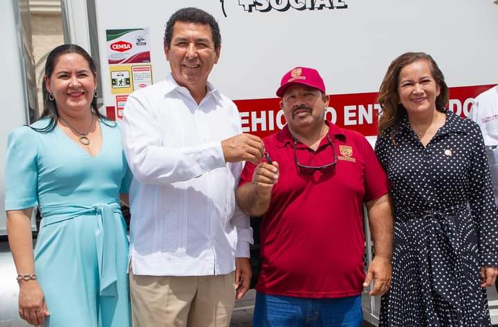 El alcalde Mario Alberto López Hernández entregó al Sistema para el Desarrollo Integral de la Familia una ambulancia equipada para atender casos de emergencia de personas vulnerables que requieran apoyo para traslados, así como también un camión compactador que viene a reforzar el equipo de la Dirección de Limpieza Pública.
