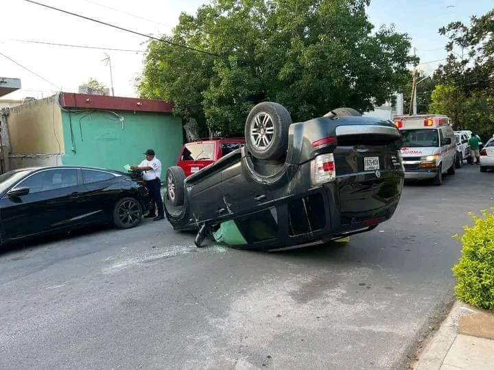Los hechos ocurrieron a la altura de la calle Claveles de la colonia Jardín en donde un acelerado joven chocó con su camioneta en contra de un carro estaciónado y después se volcó.