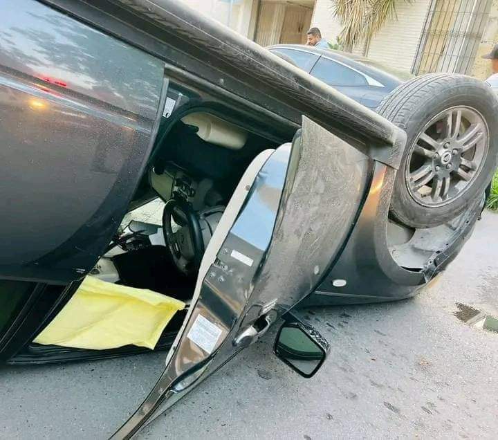Un aparatoso choque con volcadura se registró la tarde de este martes en #Matamoros.