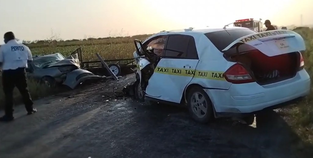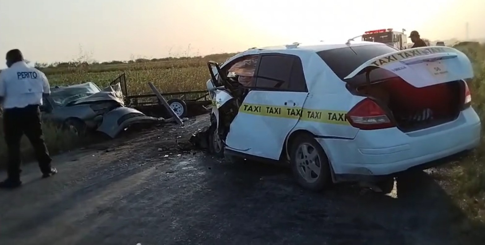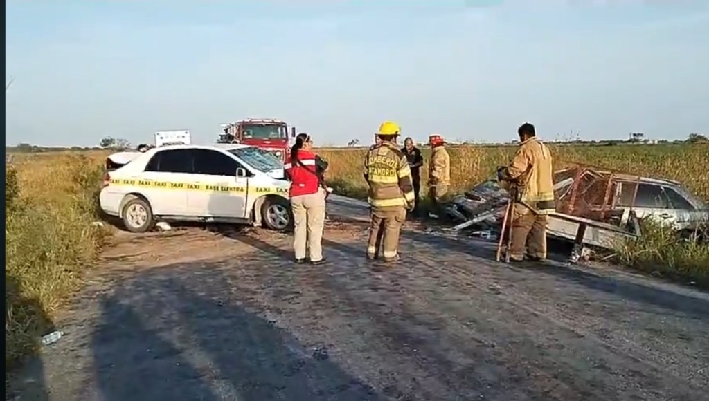 Matamoros, Tamaulipas.- Dos personas murieron esta tarde en un encontronazo entre un taxi y un auto suscitado en el kilómetro 13 de la carretera Matamoros-Lucio Blanco, además se registraron varios lesionados, entre ellos, un menor de edad que fue trasladado a Valle Hermoso para que recibiera atención.