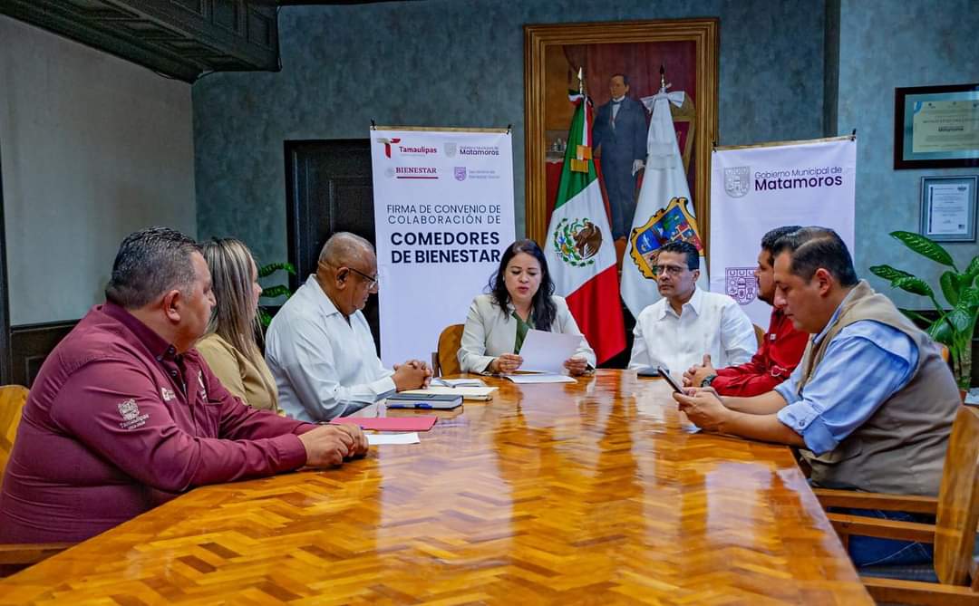 Funcionarios de los Gobiernos de Tamaulipas y de Matamoros firmaron un convenio de colaboración para impulsar a través de la Secretarías de Bienestar Social, la operación de Comedores de Bienestar en zonas consideradas de atención prioritaria.