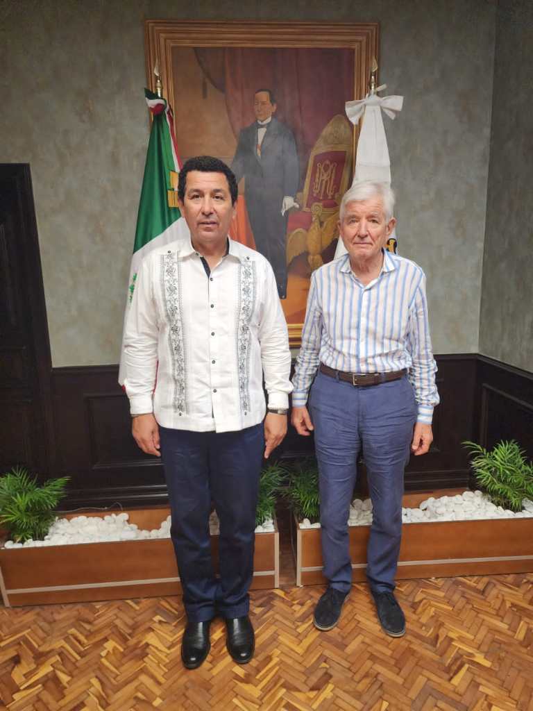 El Alcalde Mario Alberto López Hernández se reunió con el Embajador de Buena Voluntad de la Fundación ISCM, Heinz Schneider para dar seguimiento a los proyectos relacionados con la concesión de las aguas residuales que se producen en Matamoros, las que permitirán la producción de hidrógeno verde.