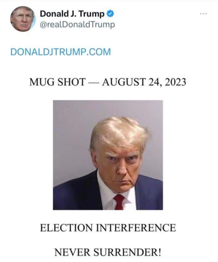 La Oficina del Sheriff del condado de Fulton publicó la fotografía policial del expresidente Donald Trump.