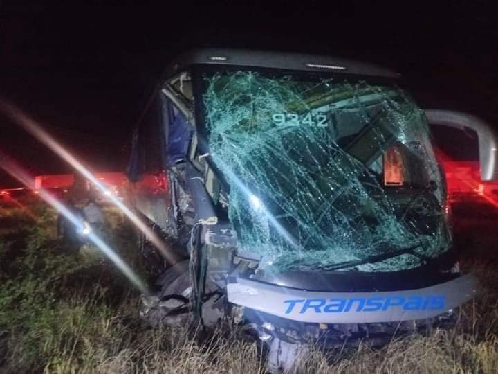 Ciudad Victoria, Tamaulipas.-Personal de la Guardia Estatal asignado a la Estación Segura Aeropuerto acudió al kilómetro 58 de la Carretera Federal 83 para brindar auxilio a las personas lesionadas por el choque entre un tráiler y un autobús de la línea Transpais.