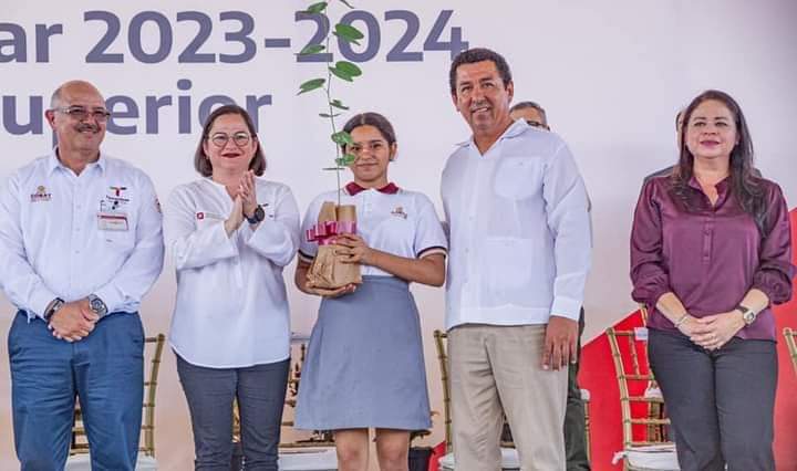 Más tarde, López Hernández acompañado de la Secretaria de Educación en Tamaulipas, Lucía Aimé Castillo Pastor, cortó el listón inaugural del COBAT 02 extensión Palmitas, activó el inicio del ciclo escolar, puso en marcha una campaña de reforestación y otorgó becas del programa “Nadie Atrás, Nadie Fuera”.