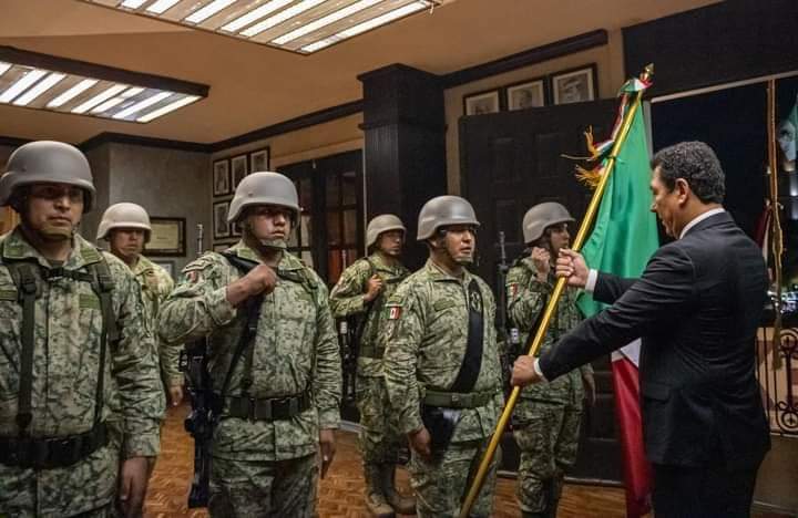 Previamente en la sala Benito Juárez de la Presidencia Municipal se realizó el acto protocolario en donde el secretario del Ayuntamiento, Carlos Ballesteros Gálvez entregó la Bandera de México a los integrantes de la escolta del Ejército Mexicano, quienes a su vez la entregaron al Alcalde Mario López.