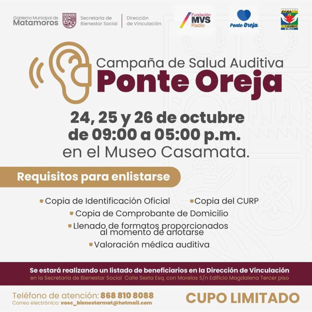 El Gobierno Municipal de Matamoros te extiende la invitación la campaña de Salud Auditiva “Ponte Oreja” 👂🏼🦻