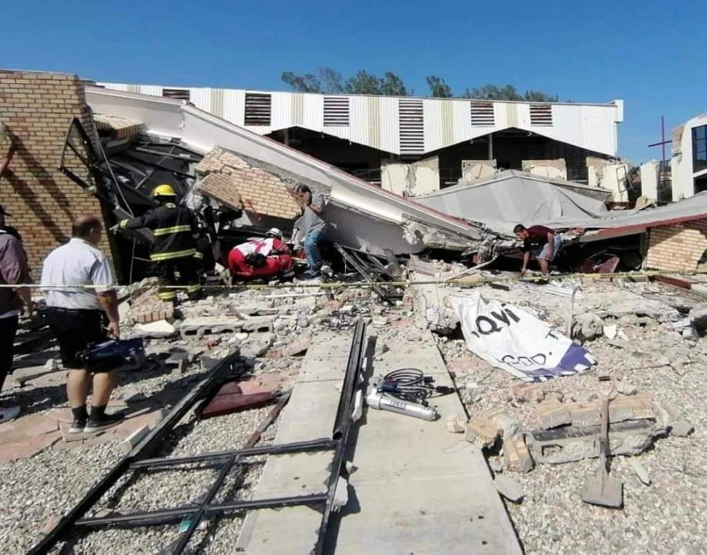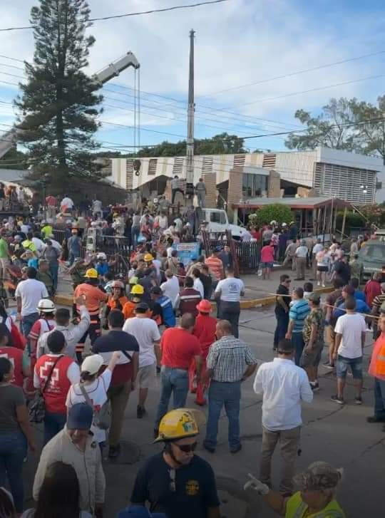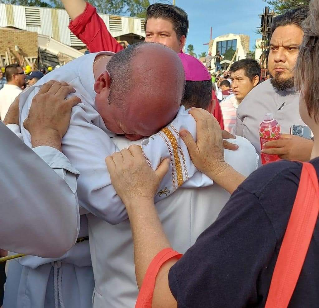El Gobernador de Tamaulipas se encuentra en estos momentos en el lugar del derrumbe del techo de la iglesia Santa Cruz en Ciudad Madero Tamaulipas.Se espera que en unos minutos más se de el informe actualizado sobre la situación, número de personas fallecidas, lesionados y la cantidad de personas que faltan por rescatar.