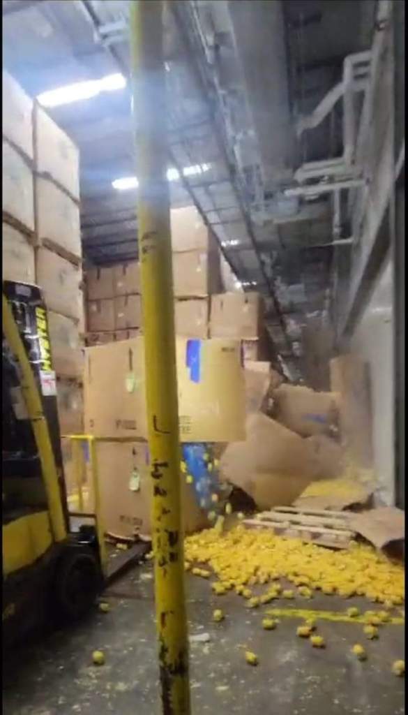 De acuerdo a las versiones de los trabajadores se dice que toda la semana se estuvieron callendo cajas y que aún así obligaban a los trabajadores a meterse a un congelador a apalear el producto tirado