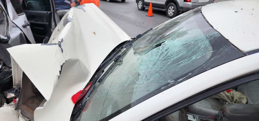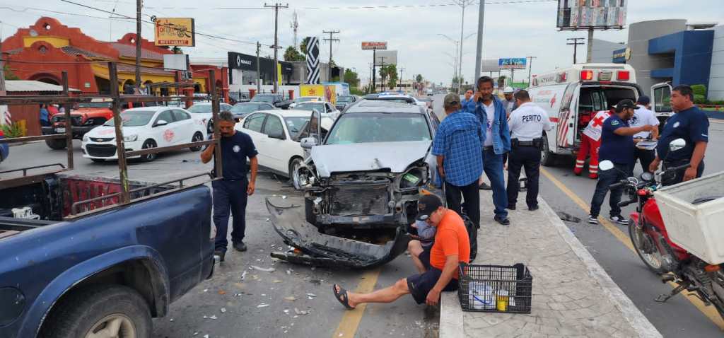 Un choque multiple con lesionados ocurrio está mañana en la calles Sexta y Manuel Cavazos Lerma frente a la tienda elektra.