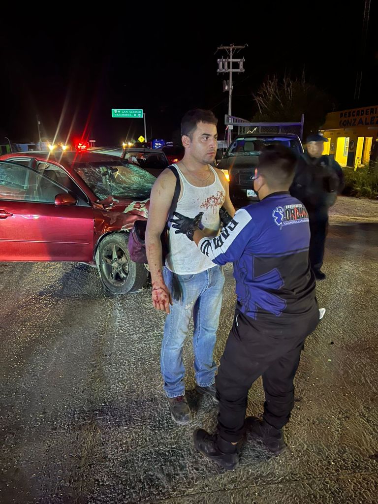 Un choque entre una combi y un carro mazda rojo se reportó a la altura del ejido San Germán en la carretera Matamoros-San Fernando.