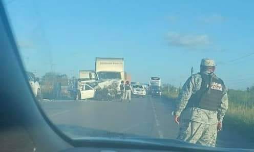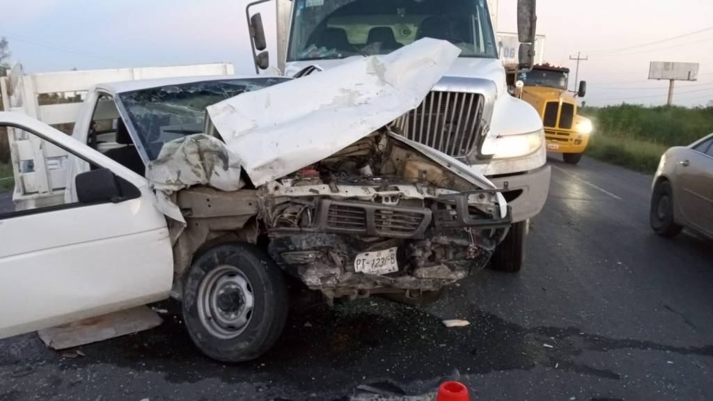 hoy por la tarde se informó de un aparatoso accidente, a la altura del ejido Guadalupe entre una camioneta Nissan Estacas y un camión de carga de la empresa Almacenes Ibarra.