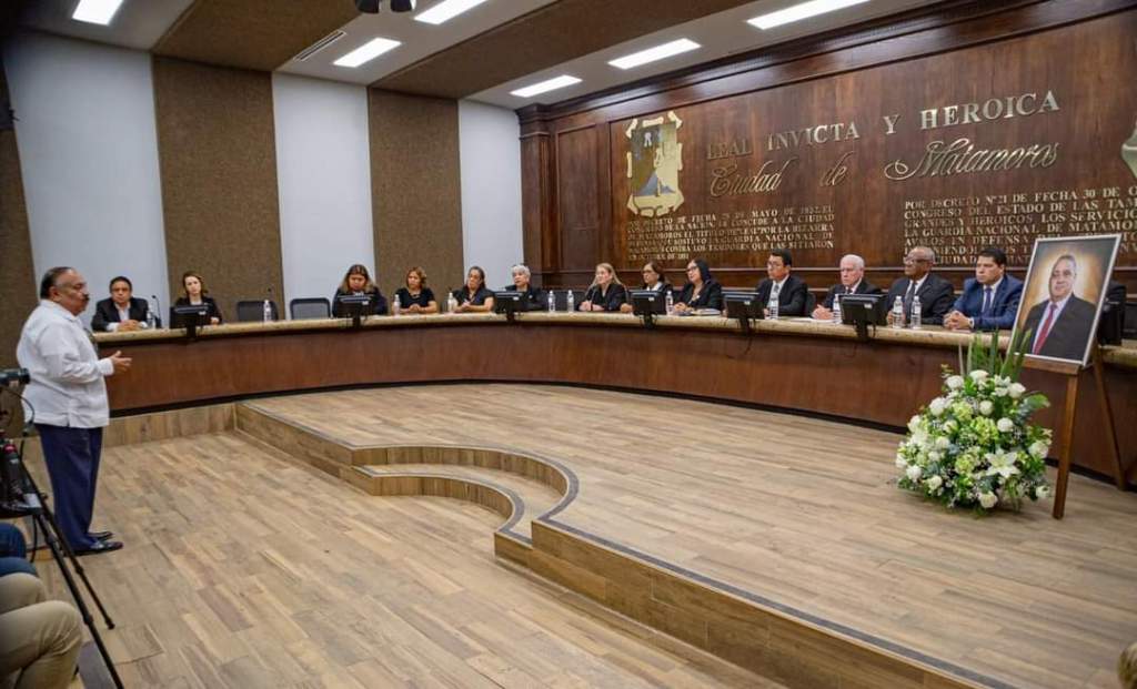 A nombre del Republicano Ayuntamiento, el primer síndico, Laura Enedelia Cárdenas Farías, dio lectura a la semblanza de quien ocupó una silla en el Cabildo durante las últimas dos administraciones, representando las siglas del Partido del Trabajo.