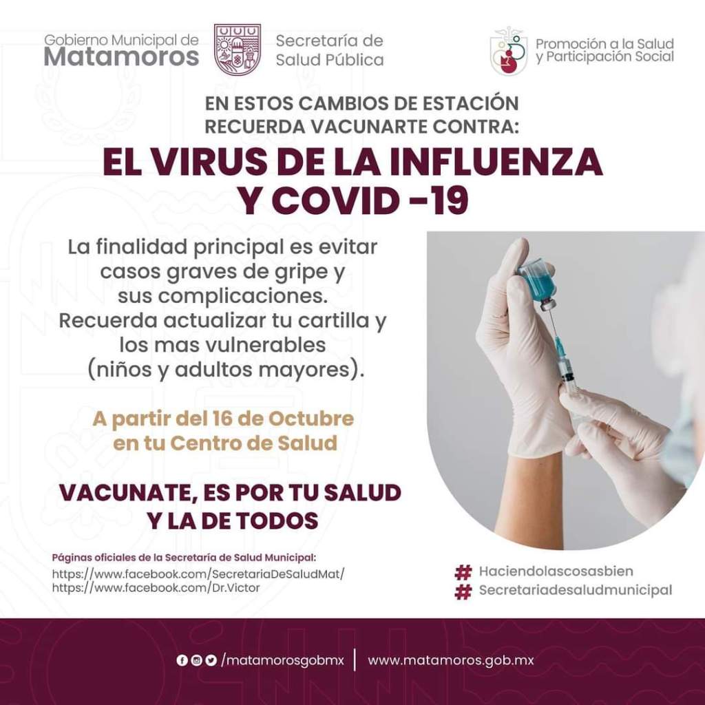 El Gobierno Municipal de Matamoros a través de la Secretaría de Salud Pública Municipal te informa: Publicado porlaopiniondematamorosoctubre 31, 2023noviembre 1, 2023Publicado en #GOBIERNO MUNICIPAL DE MATAMOROS, #MUNICIPIO, #saludmunicipal, GOBIERNO MUNICIPAL DE MATAMOROS, Municipio Matamoros, notícias, noticia nacional e internacional, noticias de Tamaulipas, noticias regionales, periodismo, SALUD, Secretaria de Salud MunicipalEtiquetas:#alcaldedematamoros, #gobiernomunicipal, #MATAMOROS, #MUNICIPIO, #municipiomatamoros En estos cambios de estación recuerda vacunarte contra el virus de la influenza y covid 19. Compártelo: Haz clic para compartir en X (Se abre en una ventana nueva) X Haz clic para compartir en Facebook (Se abre en una ventana nueva) Facebook Haz clic para compartir en WhatsApp (Se abre en una ventana nueva) WhatsApp Haz clic para compartir en X (Se abre en una ventana nueva) X Más Haz clic para compartir en Telegram (Se abre en una ventana nueva) Telegram Me gusta Cargando... Relacionado Publicado por laopiniondematamoros Soy Reportero Con más de 15 años de estar laborando en diferentes medios de comunicación. Ver más entradas