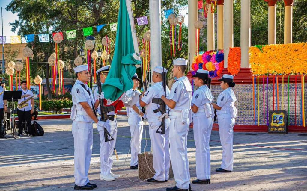 Se contó con la participación de la banda de guerra de la secundaria técnica número 51, “Jaime Torres Bodet” y con la escolta de la secretaría de Marina, quienes tuvieron a su cargo el izamiento de la monumental bandera en el asta ubicada en la plaza principal “Miguel Hidalgo”.