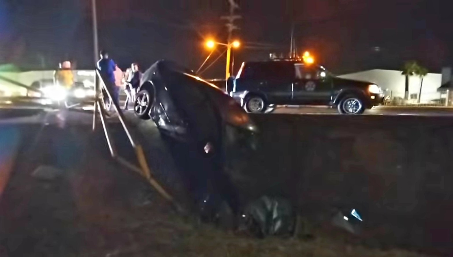 Con su auto Pontiac le pegó a un Chevrolet, Impala, blanco y lo proyectó contra un Nissan, Sentra, después él acabó con su auto en el canal ubicado en dicha zona.