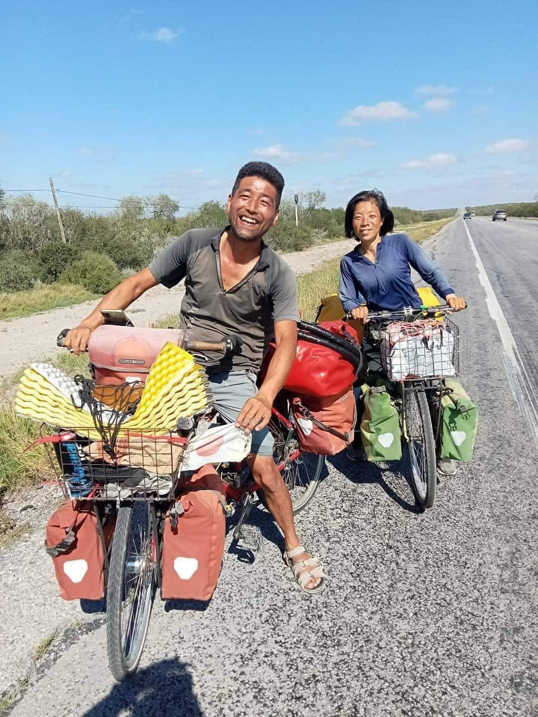 Con pocas maletas y con sus bicicletas como medio de transporte, Manabu de 49 y su esposa de 51 salieron hace cinco meses de Alaska y aún les faltan 15 para llegar hasta Argentina.
