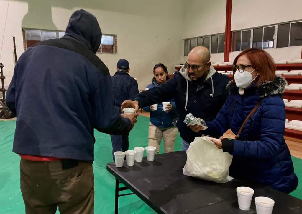 Luego de que el Gobierno Municipal a través de la Direccion de Protección Civil aperturara el albergue temporal en la Alberca Chávez, nuestro organismo entregó alimento y bebidas calientes a las personas vulnerables que se encuentran en este lugar para protegerse de las inclemencias del tiempo.