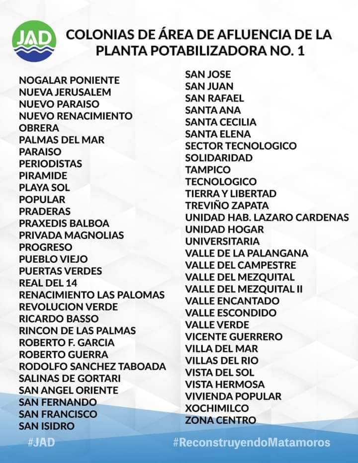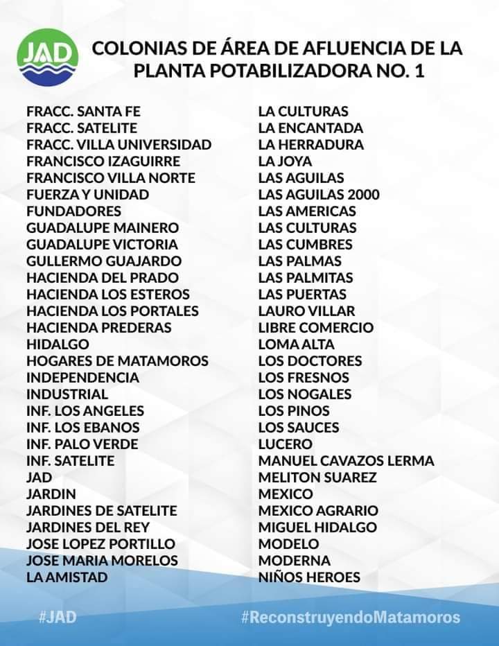 COLONIAS DONDE SE SUSPENDERÁ EL SERVICIO⬇️